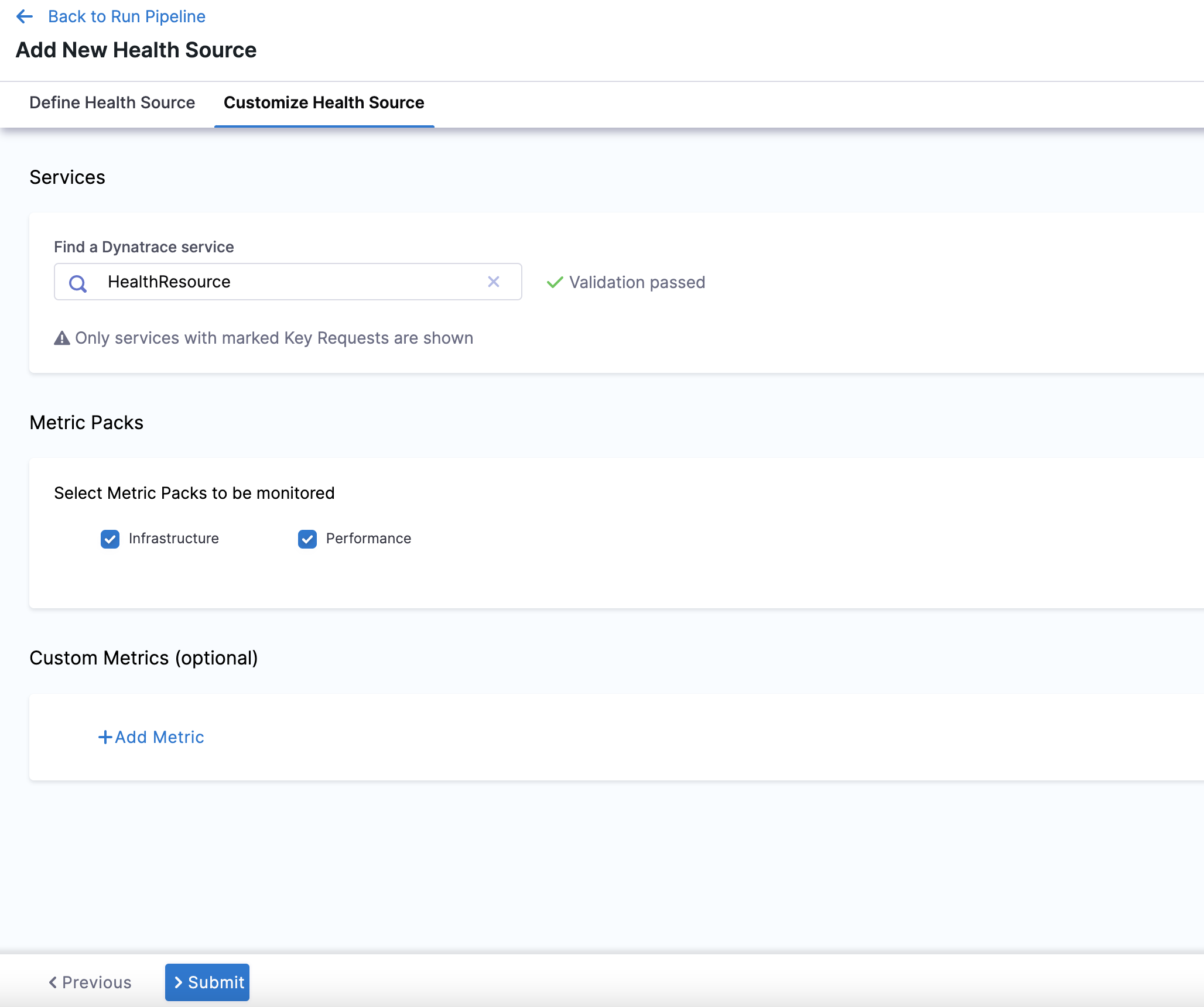 Click Add Metric if you want to add any specific metric to be monitored (optional) or simply click Submit.