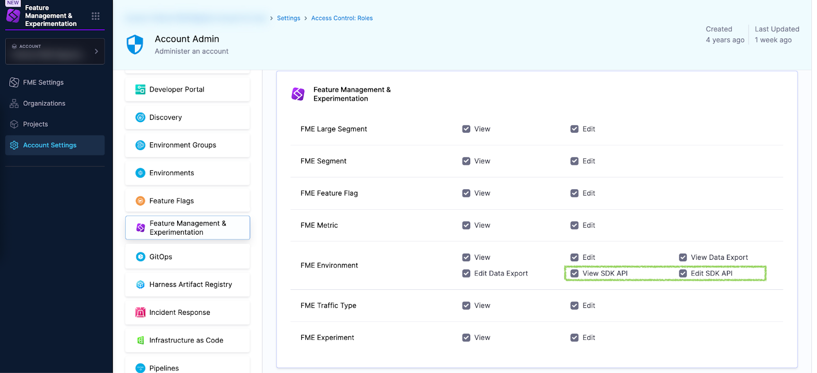 Creation of new environment-scoped Admin API keys in Harness post-migration will be available when the "Granular permissions in RBAC" roadmap item is delivered. Existing environment-scoped Admin API keys continue to function as before, but cannot be cloned or rotated. To learn more, go to the Environment Scope section.