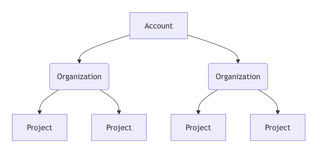 An organization is a Harness entity that fits into the Harness structure as shown below.