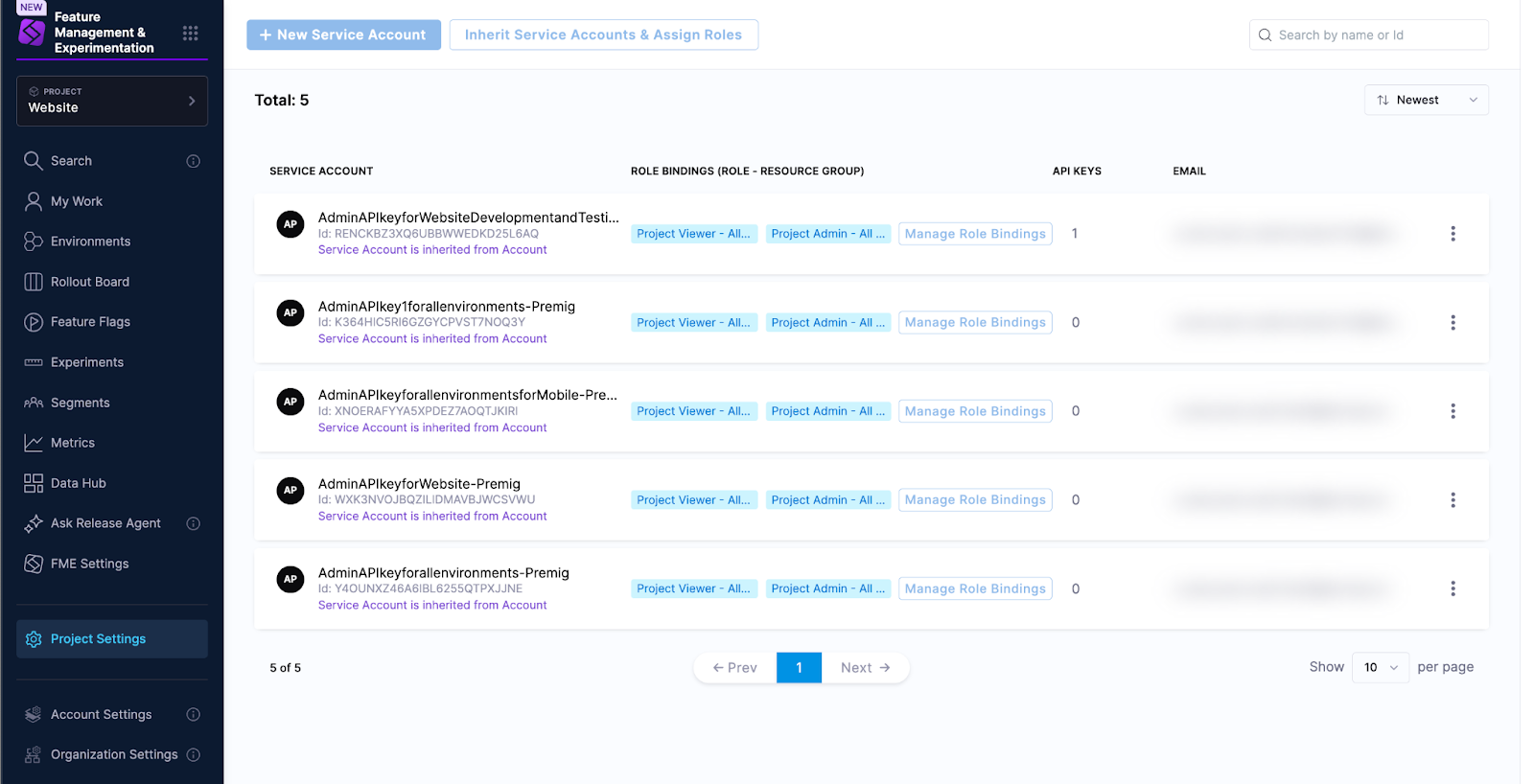 When you create a new project in Harness post-migration, you'll need to manually grant access to the service account that is linked with your legacy Split Admin API key.