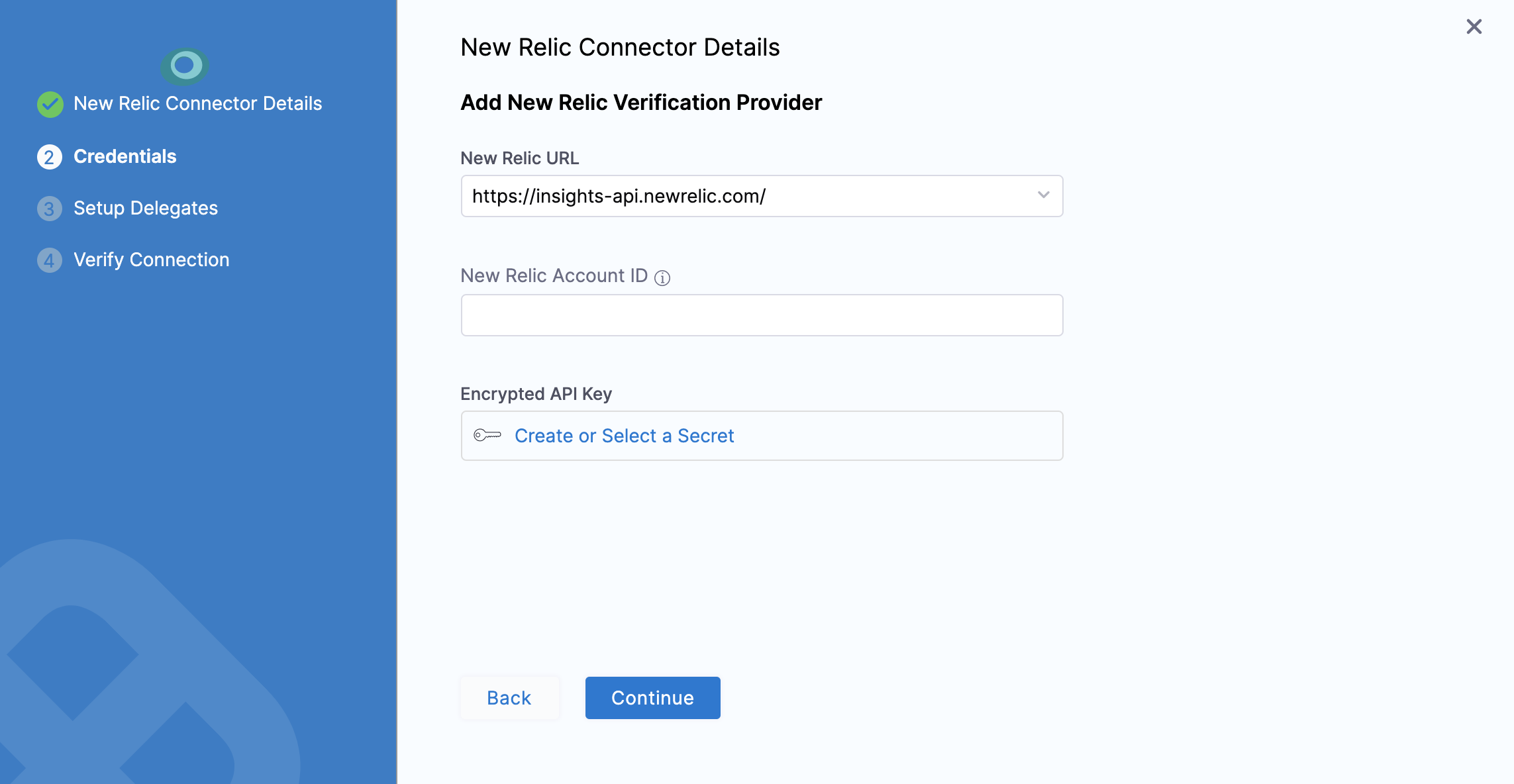 Currently, this feature is behind the feature flag CV_NEWRELIC_NEW_API. Contact Harness Support to enable the feature.