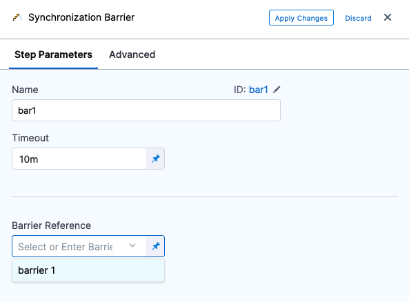 • Barriers take effect only when two or more stages or step groups use the same barrier name (configured via the Barrier Reference field in the Barrier step) and are executed in parallel.