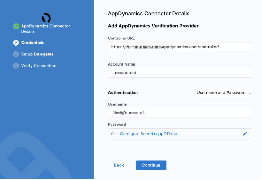 1. In Find an AppDynamics application enter the name of the application and select an option from the list.