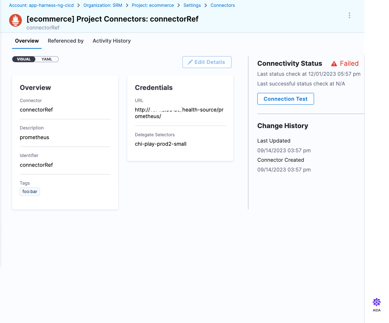 When you select Connection Test on the Connector Details page, at times, you might encounter a connection failure.