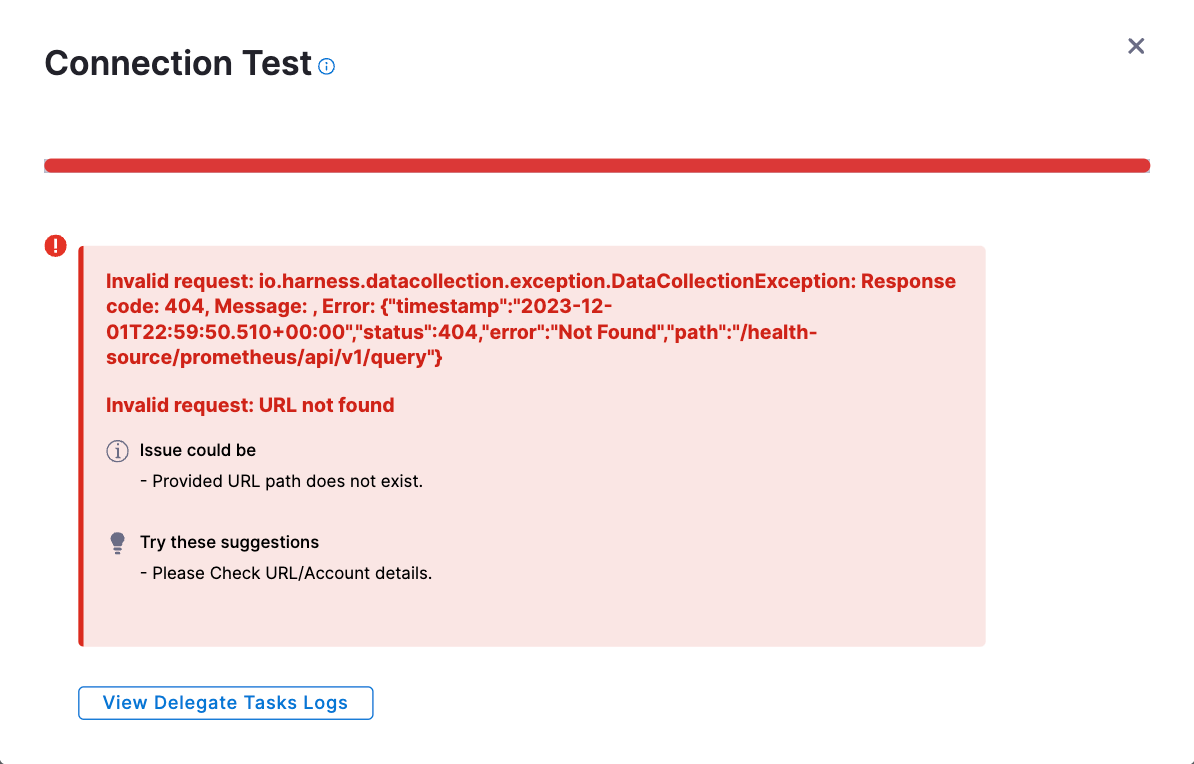 If you suspect network connectivity is causing the delegate to fail, troubleshoot your network. If the problem is not resolved, check the validity of the delegate credentials.