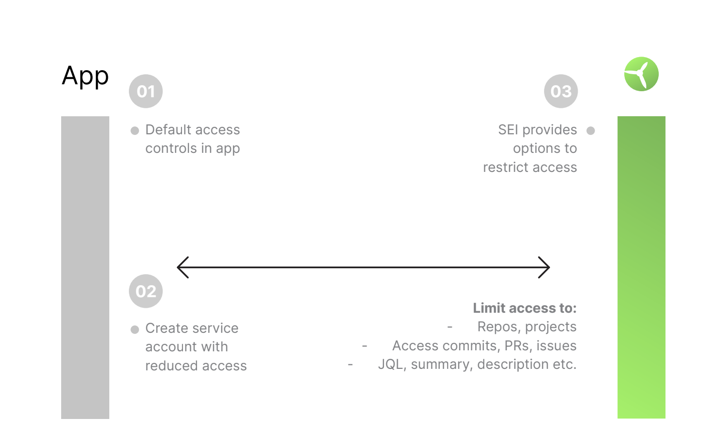 - Ingestion Satellite: The SEI Ingestion Satellite connects outbound to on-premise systems like Jira and GitHub to fetch metadata through APIs. The authentication tokens used for these connections remain within the user's environment and are never exposed externally.