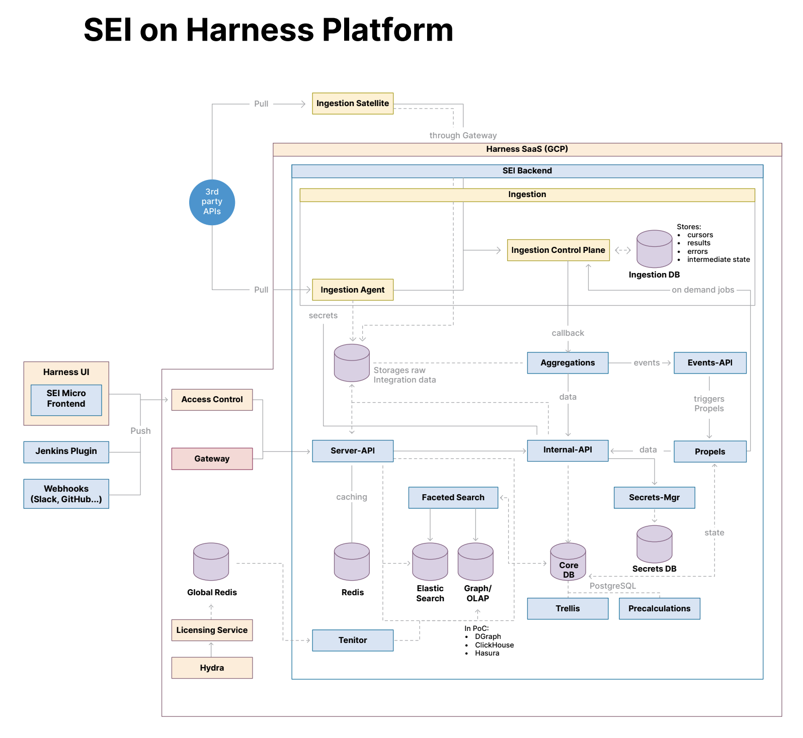 This topic outlines the architecture for the Harness Software Engineering Insights module, including its ingestion process and data flow across the integrations.