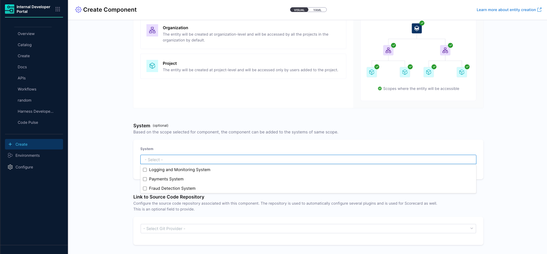 Harness Internal Developer Portal (IDP) now supports System as a high-level catalog entity type, designed to logically group related Components, APIs, and Resources under a functional or domain boundary. This enhances catalog visibility, governance, and discoverability for complex architectures.