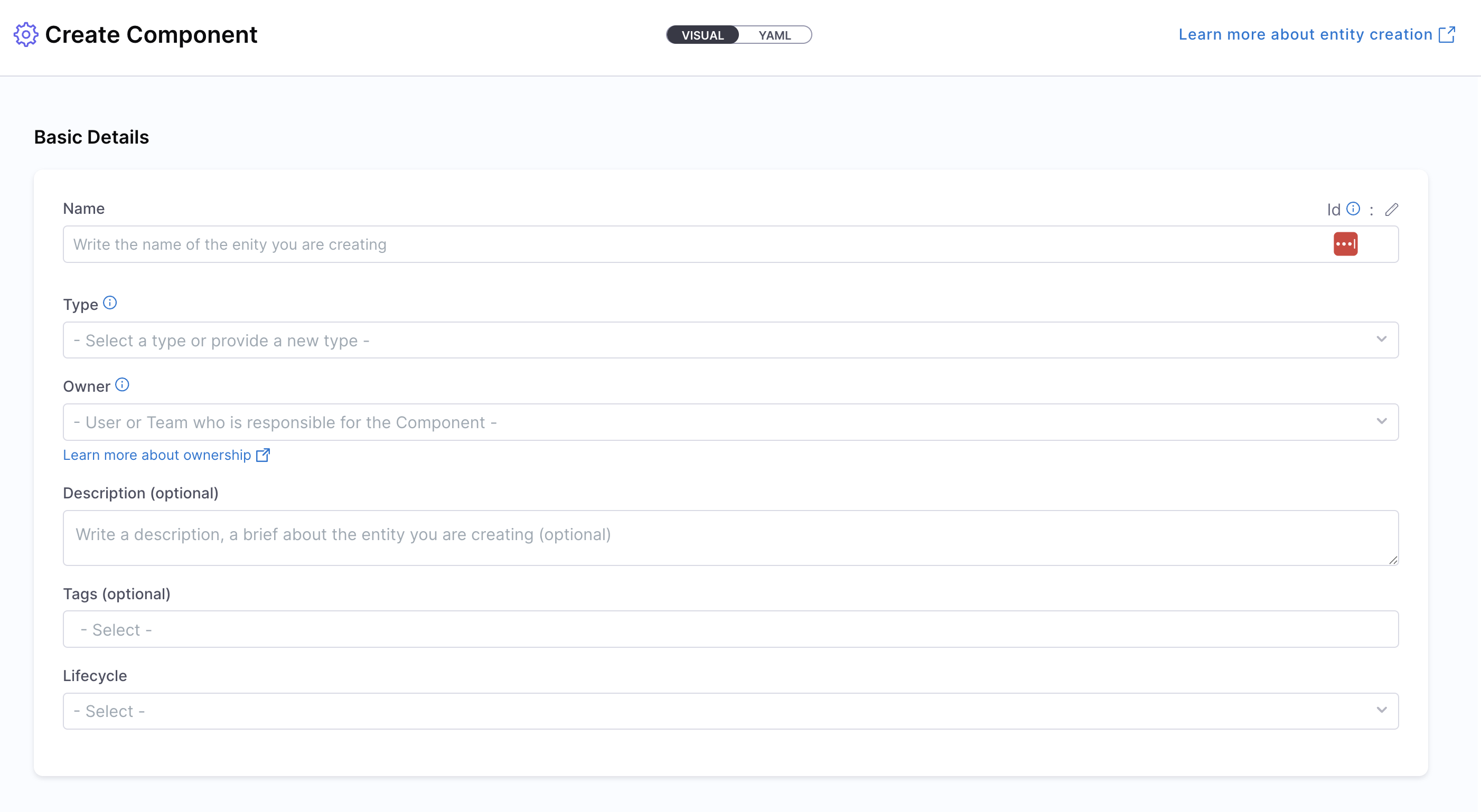 • Associations are made in the entity's YAML via the spec.system field and automatically reflected in the Catalog without updating the System YAML.