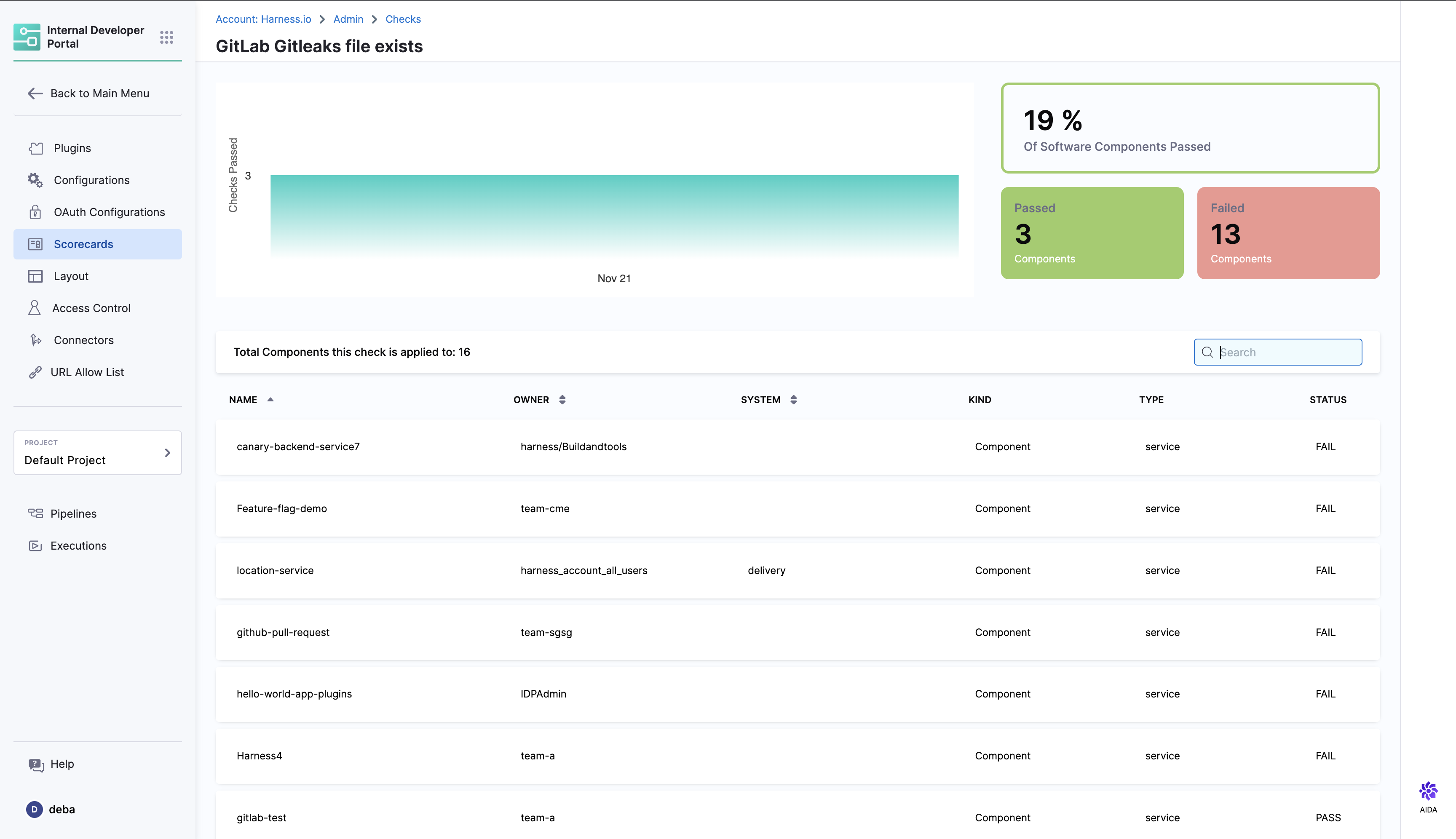 STO findings can now feed into IDP Scorecards, allowing automated tracking of security compliance across all services. Custom vulnerability checks, thresholds, and severity filters can be configured to reflect organization-wide security posture.
