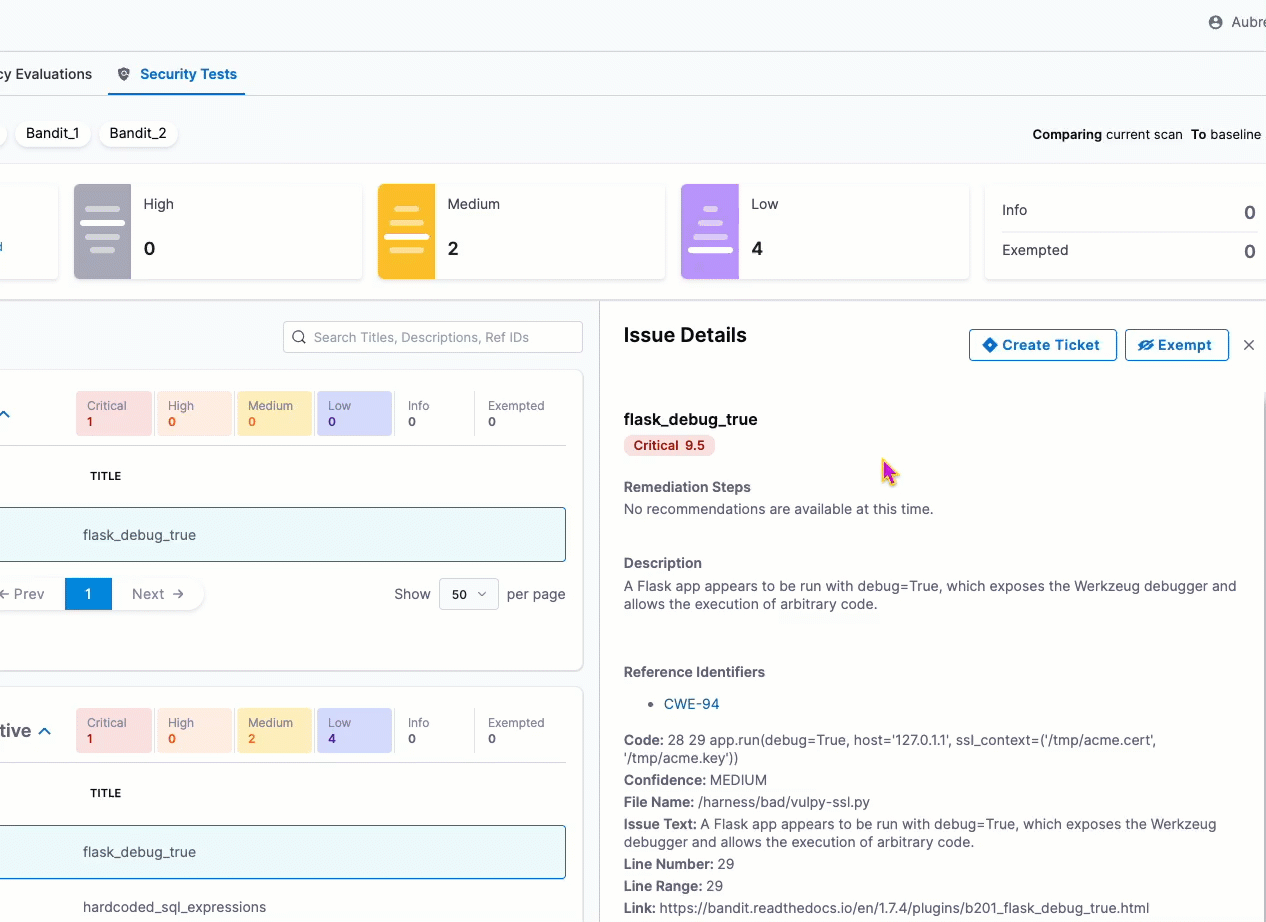 - Dedicated Security Exemptions Section: Ability to grant and manage security exemptions by SecOps owners on identified vulnerabilities or issues during security testing. Exemptions can also be made in the STO Pipeline against specific issues.