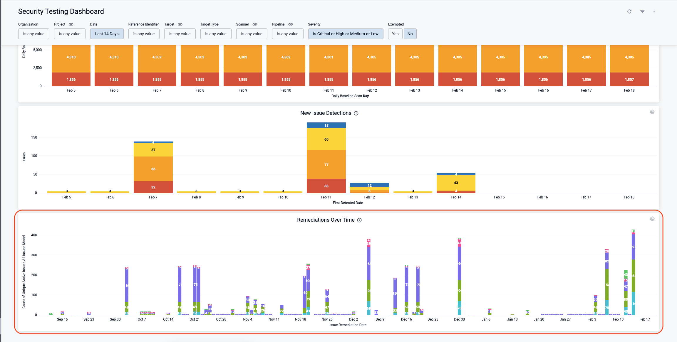 Fixed an issue where remediation calculations were skipped due to an internal race condition; this now ensures accurate remediation trends in the Remediation Over Time graph on the Security Testing Dashboard (STO-8456).